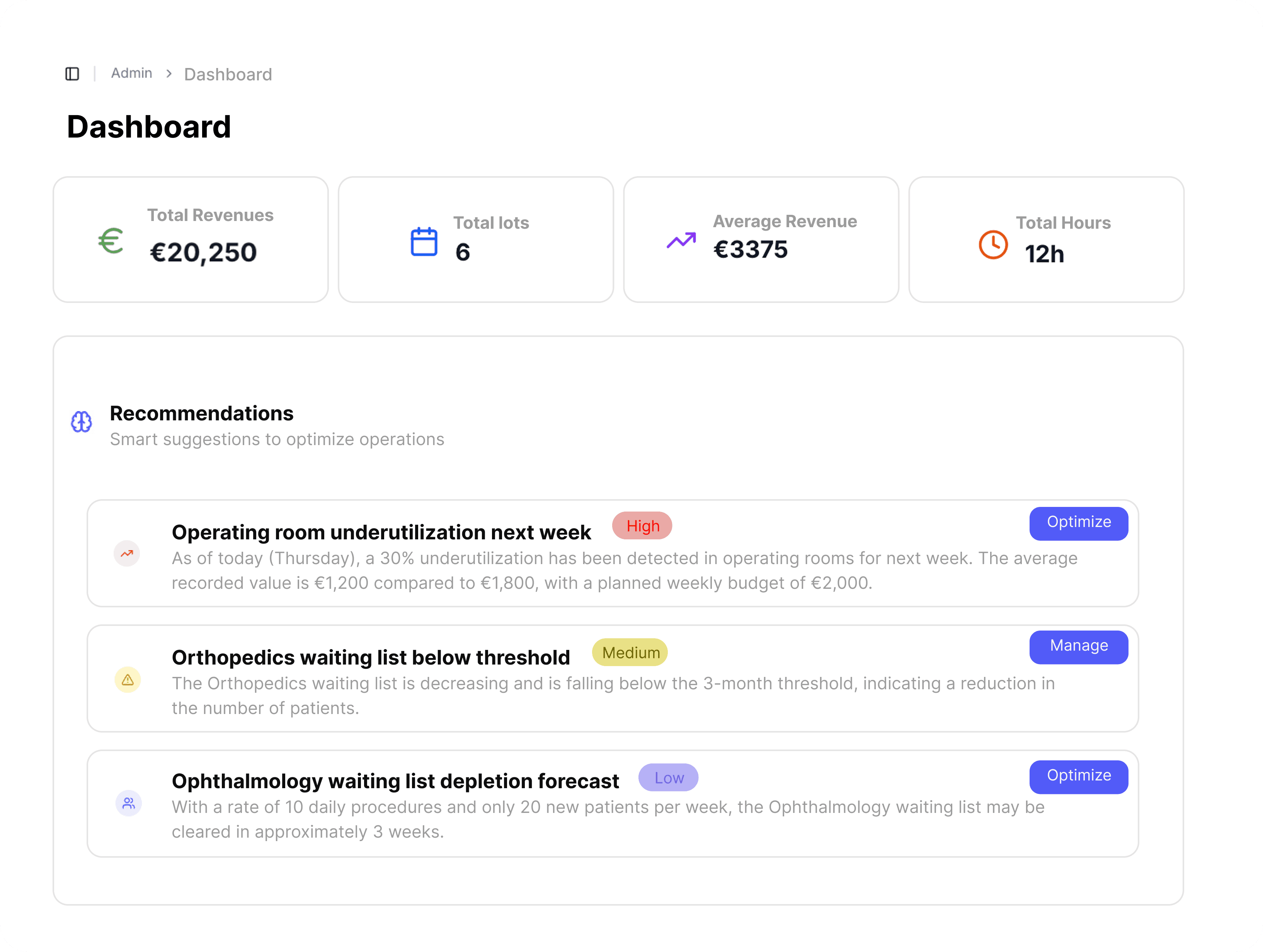 Optimize surgical scheduling and improve operating room utilization through intelligent planning.